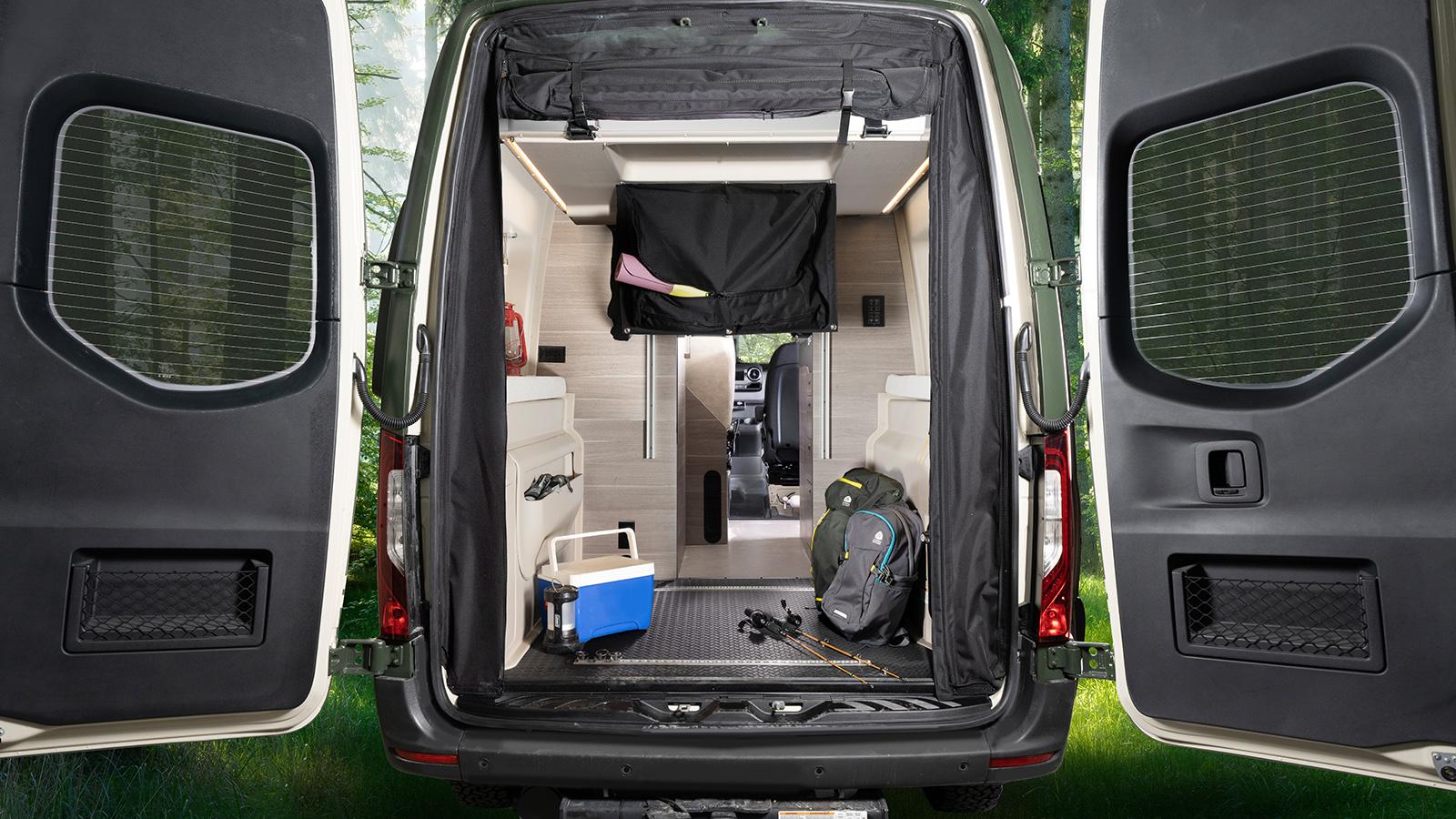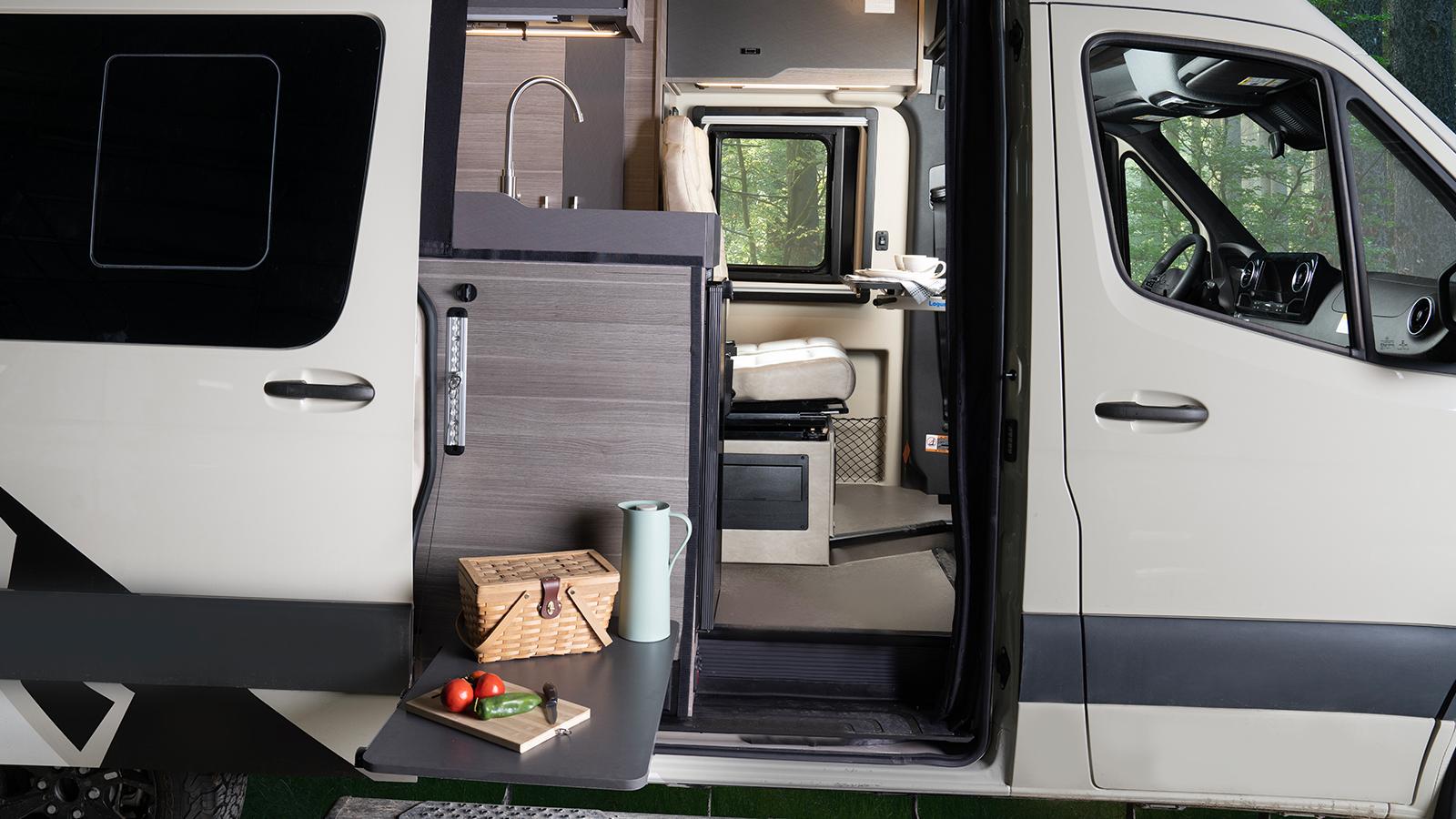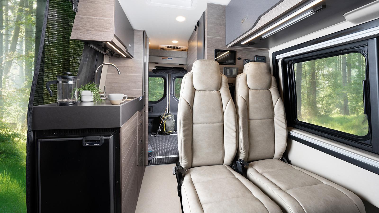 The Jayco Terrain Class B is ready to answer the call of the wild, starting with the Sprinter AWD Premium Mercedes-Benz® chassis it’s built on. The standard 48V 210 amp hour smart lithium battery provides 10KW hours of power and the new Starlink satellite internet system keeps you connected. Inside you’ll find Tecnoform® cabinets throughout with integrated kitchen pullouts, a dual bench seat with two seatbelts and slide/recline features and a rear garage with a power drop-down overhead bunk rated at 750 lbs.