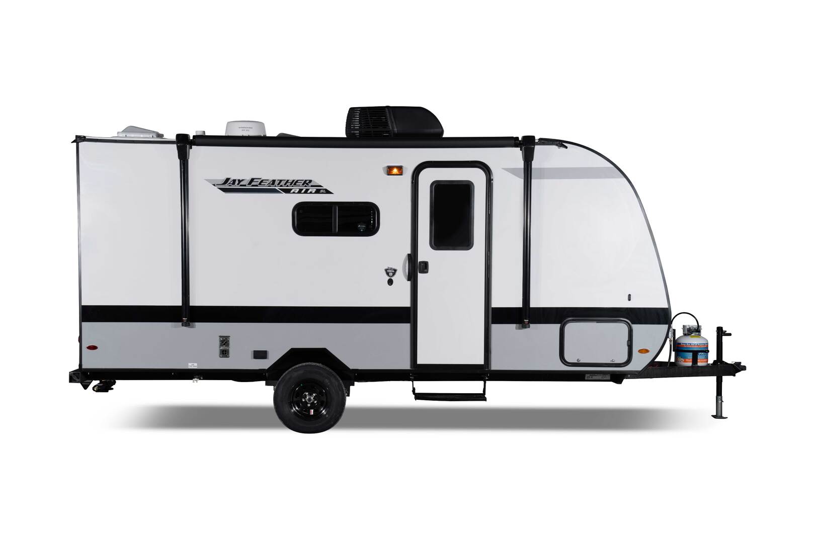 The included Customer Value Package takes your experience to the next level. Enjoy modern conveniences like a 5 cu. ft. 12V refrigerator, 13,500 BTU roof A/C, roof-mounted solar prep, and a microwave oven. Whether you’re staying cozy on a chilly night with the 19K BTU furnace or enjoying the shade of the power awning on a sunny day, the Jay Feather Air SL has you covered.