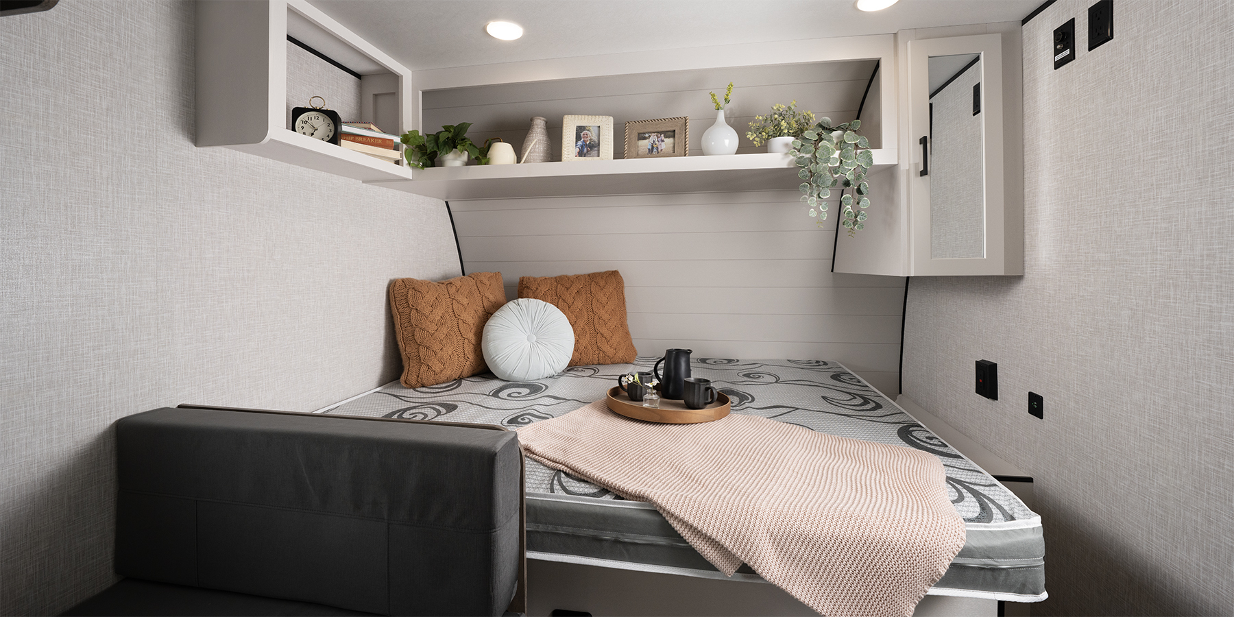 We know you spend most of your time outside, but for those nights and certain days you spend inside, you’ll still be able to enjoy excellent views, thanks to the Jay Flight's innovative oversized G20 dark-tinted windows. The dark-tinted windows aid in keeping UV rays and the heat at bay, and add privacy. Even the entry door consists of a window (which you'd be hard-pressed to find in other brands). In the Jay Flight SLX, you can have it all–comfort, convenience, and superior design–in a compact, amenity-packed package.