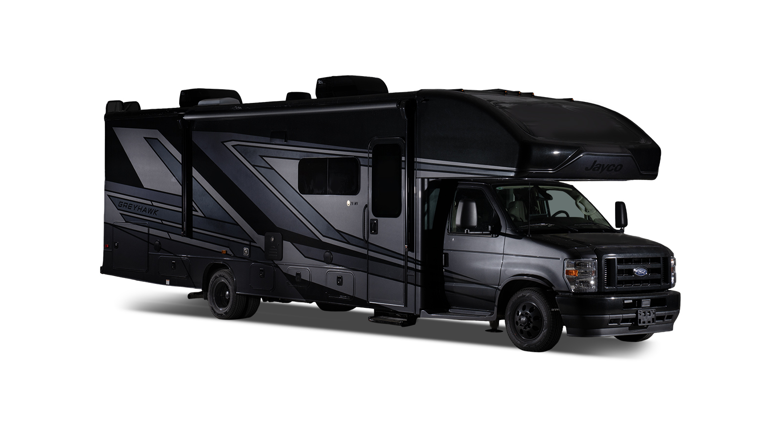 The 2026 Greyhawk is Jayco's amenity-rich, top-of-the-line gas Class C motorhome. With features like a seamless, one-piece front cap, Jayco sets a high standard in the Class C category, giving owners greater durability and protection against moisture and debris. That means more time enjoying your RV and less time in the service bay. Built on the Ford® E-450 chassis, the Greyhawk looks as sharp as it handles. Its JRide® Plus ride and handling package includes a computer-balanced driveshaft, Koni® FSD shocks, heavy-duty rear stabilizer bar, front stabilizer bar, Hellwig® helper springs and rubber isolation mounts. Together, these components create a smooth, stable ride whether you’re on the highway or heading to a scenic campsite. Off-grid adventures are made easy with a 4,000W generator with auto-gen start and a 1,000W inverter. The generator draws from the fuel tank and automatically turns on when power is needed, giving you reliable energy without the hassle. To keep things cool and comfortable, the 15,000 BTU A/C with a heat pump comes standard, or you can choose optional dual A/Cs with a power management system that adjusts energy use to prevent overloads and keep things running smoothly.