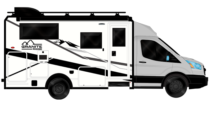 The Granite Ridge is available on two chassis options to match your travel style. The 22T is built on the Ford® Transit 350HD AWD chassis featuring a powerful 3.5L EcoBoost V6 gas engine. The 22T is a more affordable gas option that still packs serious capability. For those seeking even more performance, the 23S rides on the Mercedes-Benz® 3500 AWD diesel chassis, delivering a premium experience on and off the road.