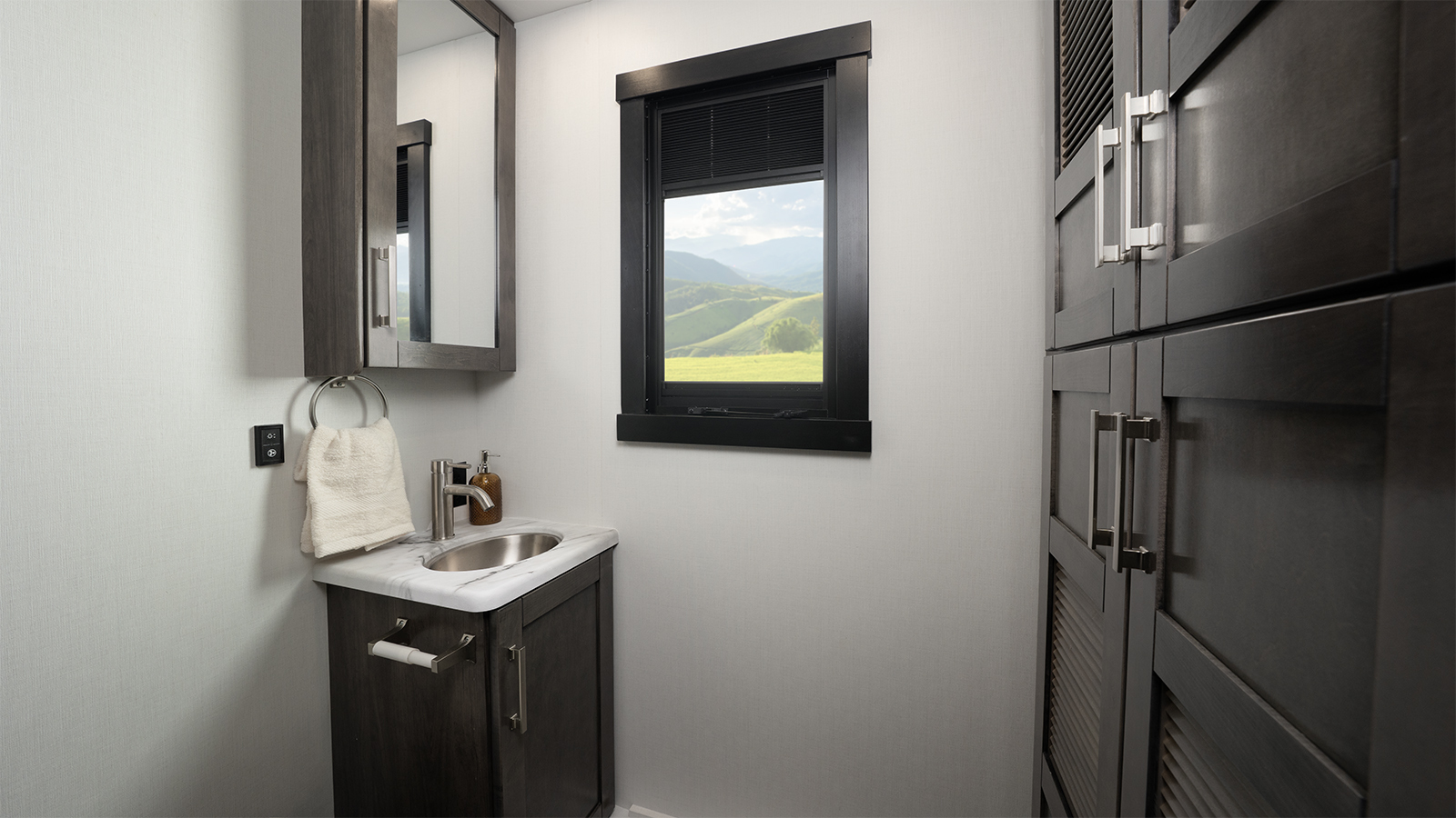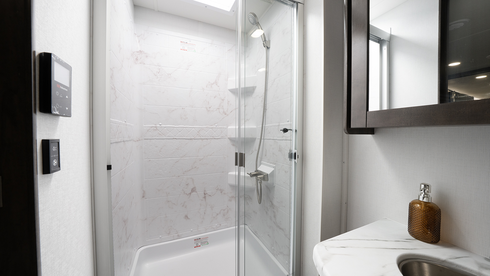The Firefly total coach control system takes smart travel to the next level. A 7-inch touchscreen and mobile app lets you manage lights, climate, and more—even when you’re sitting by the campfire. Need to cool the coach down for pets? Done. Want to turn on the lights before heading inside? Easy.
