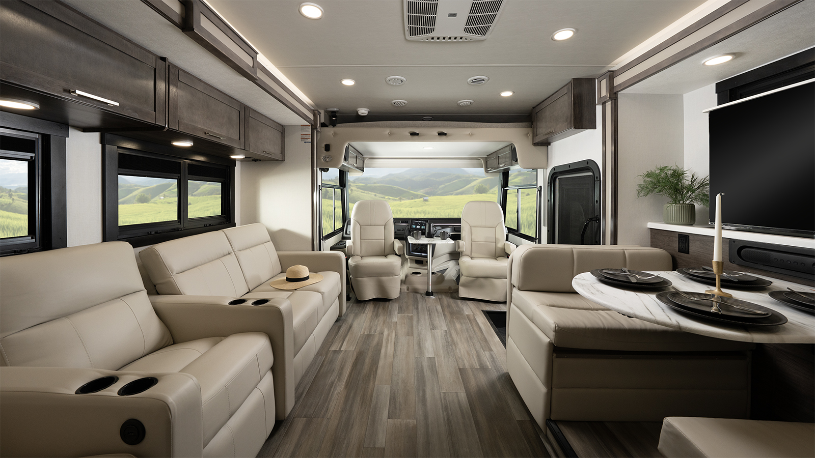 The Precept doesn’t just drive great—it looks great too! The one-piece seamless front cap features sleek accent lighting and bold LED headlights for increased visibility and a polished look. Add in the largest windshield in the industry—measuring an impressive 120 inches—and you’ll take in every view. Oversized wiper blades and a power shade help keep your line of sight clear, rain or shine.