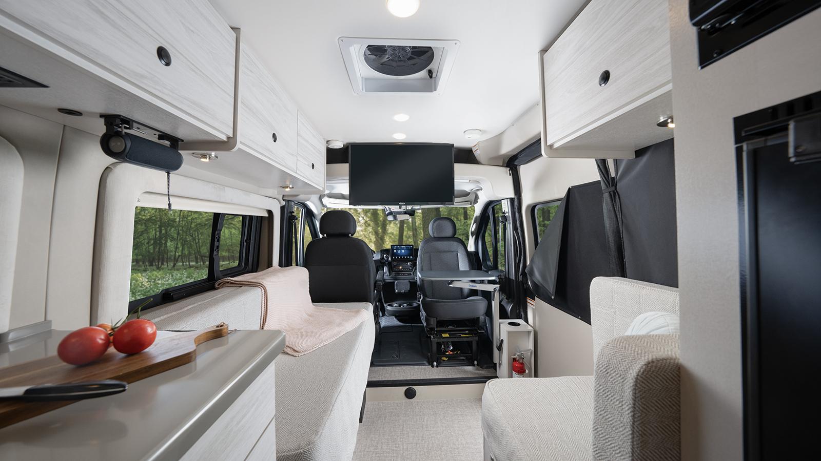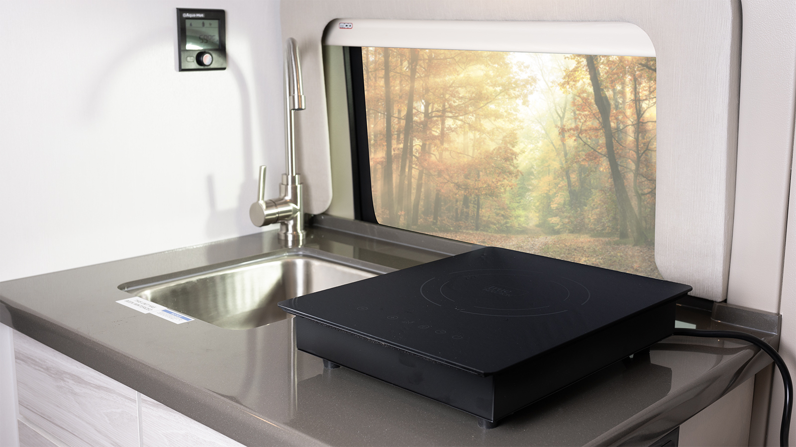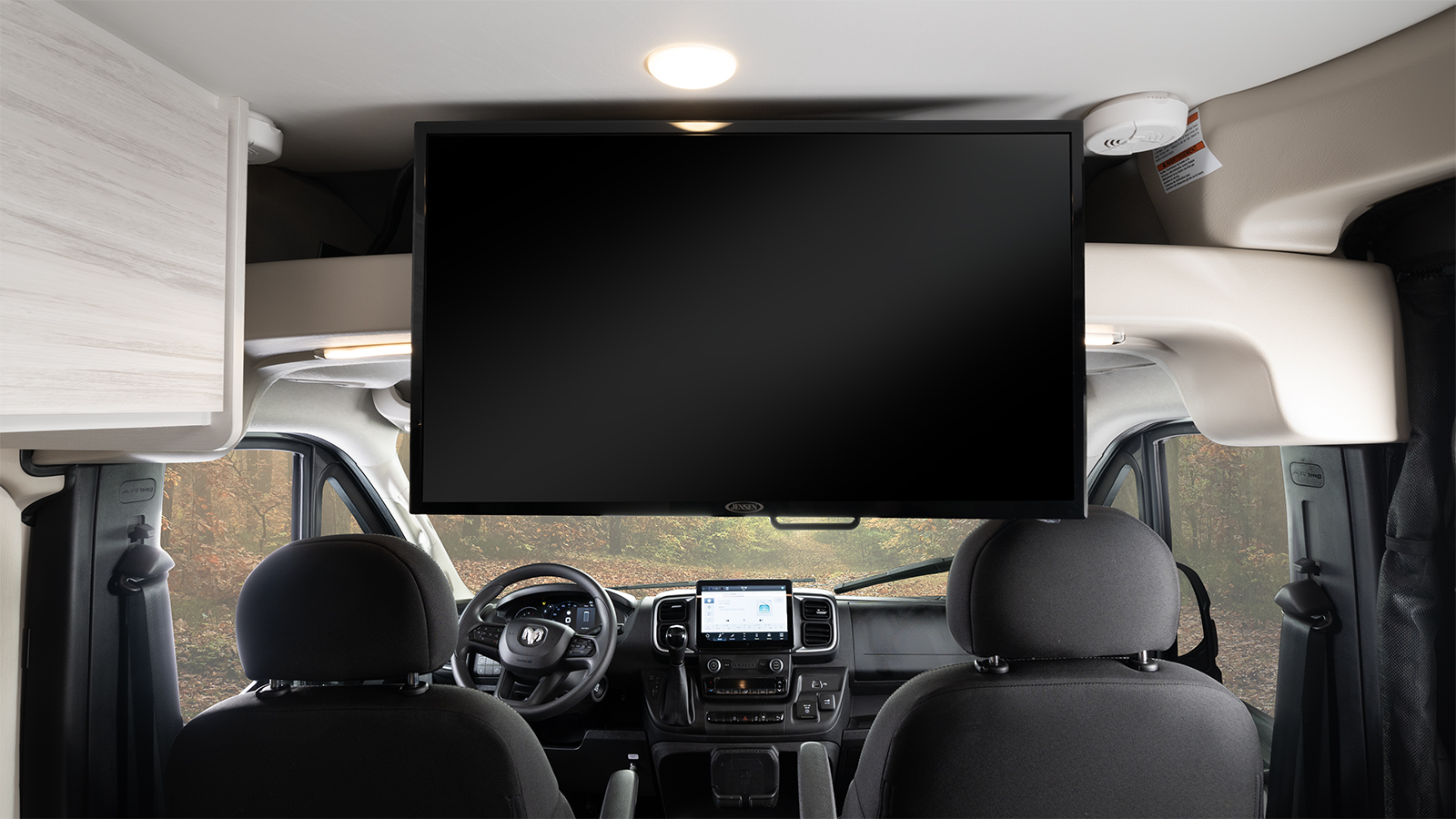Compact, yet spacious living in the Jayco Class B Comet, means a world of convenience. The 32-inch flip-down overhead TV can be tucked away when not in use to to create open space and then brought down again when you want to watch your favorite programs. Once you’re back from that hike, enjoy a refreshing shower with the Aqua View® SHOWERMI$ER™ water management system, which cycles water in the shower until it is warm enough for use. An indicator light changes color when the water is warm, ensuring no precious water is wasted. The Aqua-Hot® hydronic water and heating system is fume-free and quiet, while delivering consistent on-demand hot water.