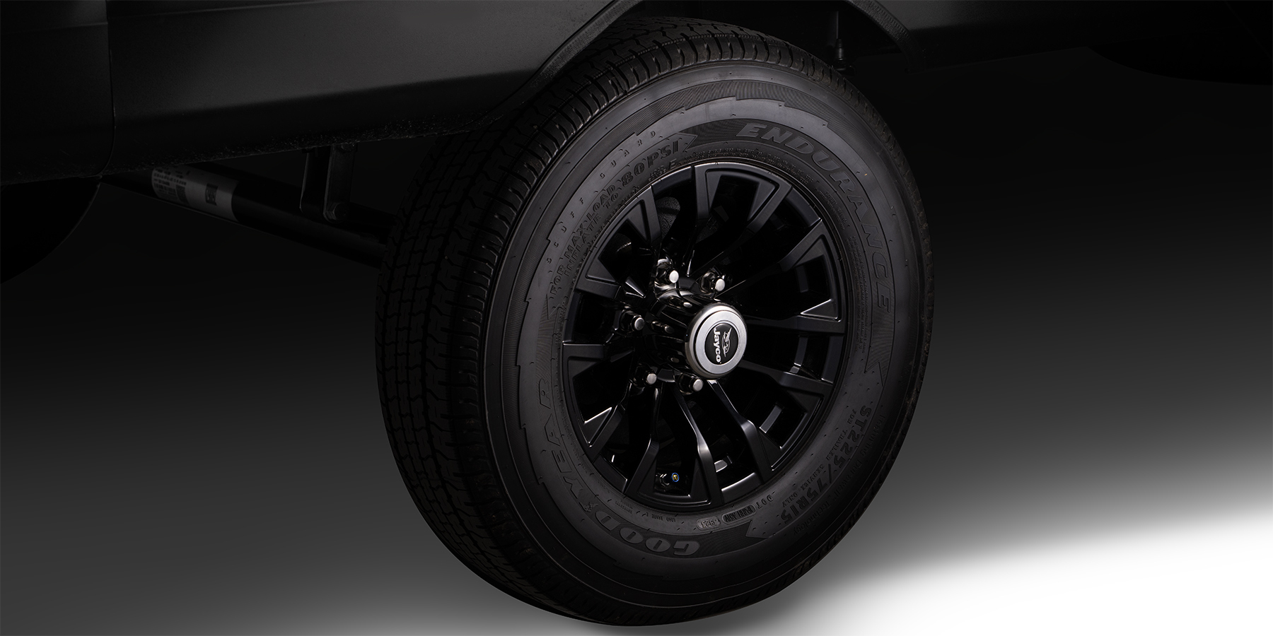 The exterior of the Jay Feather Air has its own list of standard features that make this entry-level travel trailer a must-have. We've stocked it with an 18-inch wide rear-mounted ladder for easy roof access, a two-inch rear receiver for towing, an under-mount sewer hose carrier, a spare tire in case of emergencies and more.