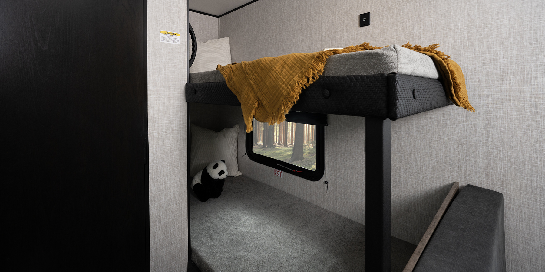 The bunks are another place on the Jay Flight SLX where the design prevents wear and tear over time. Jayco has the largest travel trailer bunk weight capacity in the industry (300 lb. weight capacity for a single bunk and a 600-lb. for double bunks). You can safely and soundly use these for sleeping arrangements, or as extra space for storage.