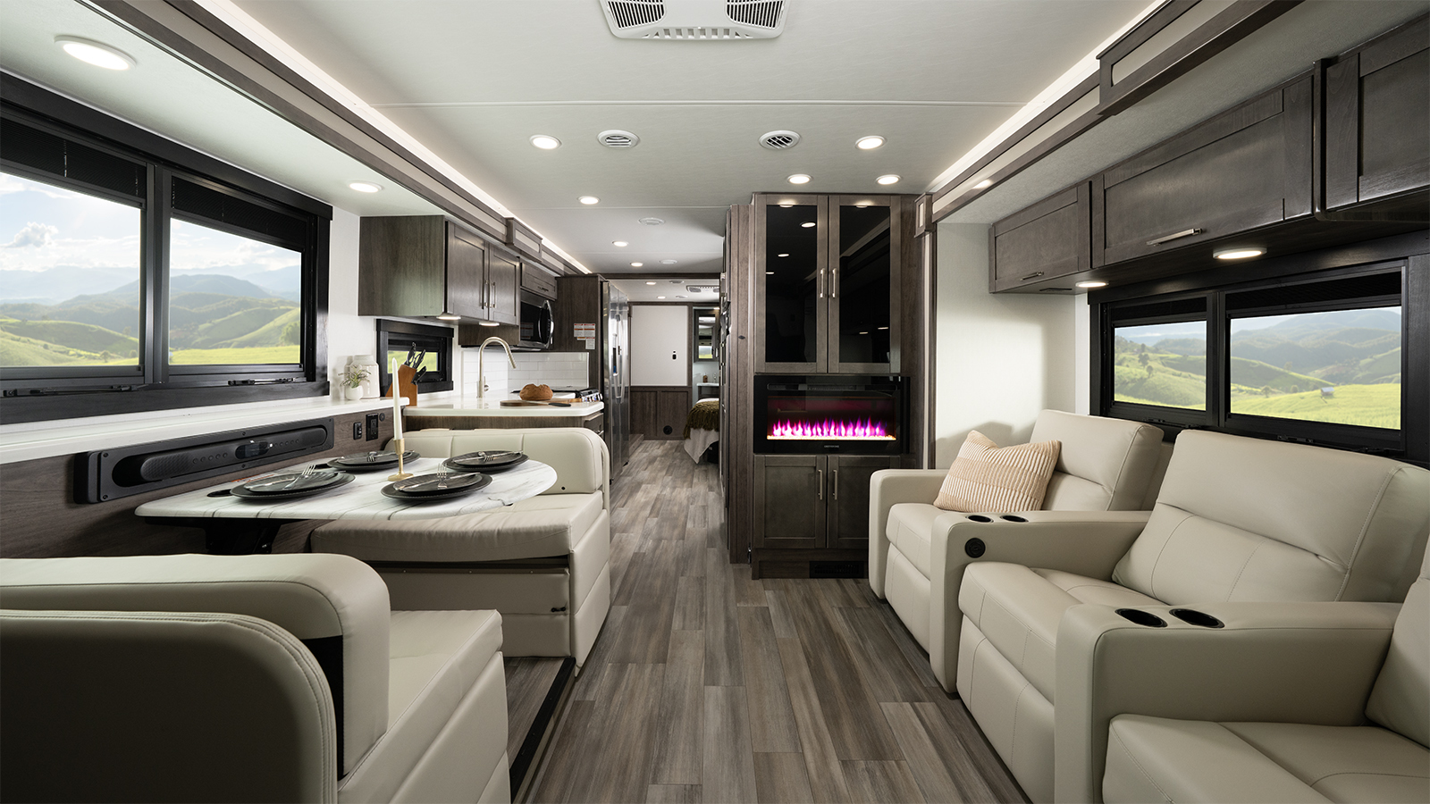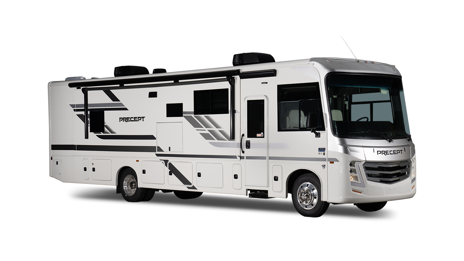 The Precept doesn’t just drive great—it looks great too! The one-piece seamless front cap features sleek accent lighting and bold LED headlights for increased visibility and a polished look. Add in the largest windshield in the industry—measuring an impressive 120 inches—and you’ll take in every view. Oversized wiper blades and a power shade help keep your line of sight clear, rain or shine.