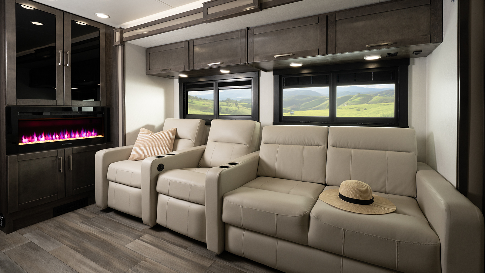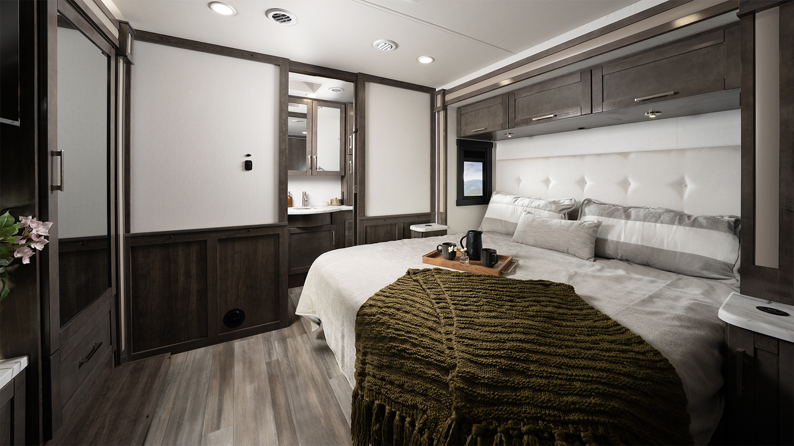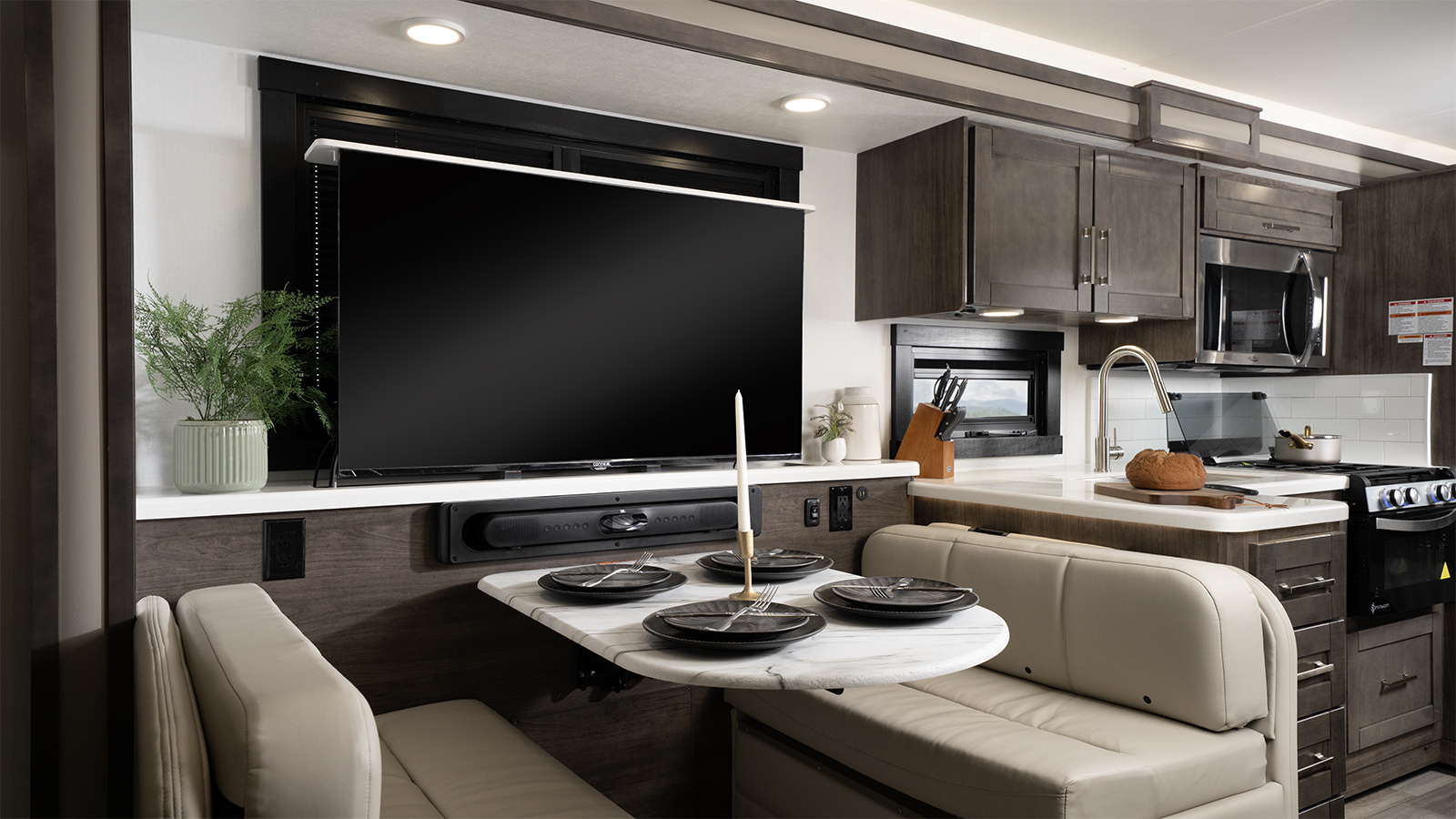 The Firefly total coach control system takes smart travel to the next level. A 7-inch touchscreen and mobile app lets you manage lights, climate, and more—even when you’re sitting by the campfire. Need to cool the coach down for pets? Done. Want to turn on the lights before heading inside? Easy.